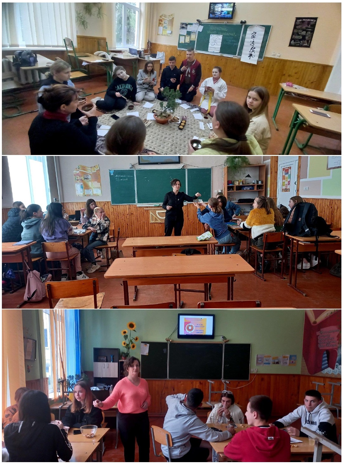 У перший день тижня було проведено «Японську чайну церемонію» за твором К. Ясунарі «Тисяча журавлів» з випускниками нашої школи.