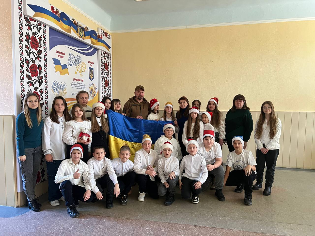 Минулого тижня у нашому закладі відбулась щемлива зустріч учнів з воїном, командиром стрілецького батальйону 5 танкової бригади, майором - Касперським Миколою Миколайовичем, який перебуваючи у відпустці, приїхав, щоб подякувати дітям за підтримку. Зустріч пройшла у надзвичайно хвилюючій, теплій атмосфері, діти вітали воїна, гучними оплесками, вигуками: «Дякуємо!», «Героям слава!». Учні підготували невеличкі привітання з прийдешніми різдвяними святами та знову передали в зону бойових дій листи, малюнки та обереги та розписали прапор зі своїми підписами і побажаннями.